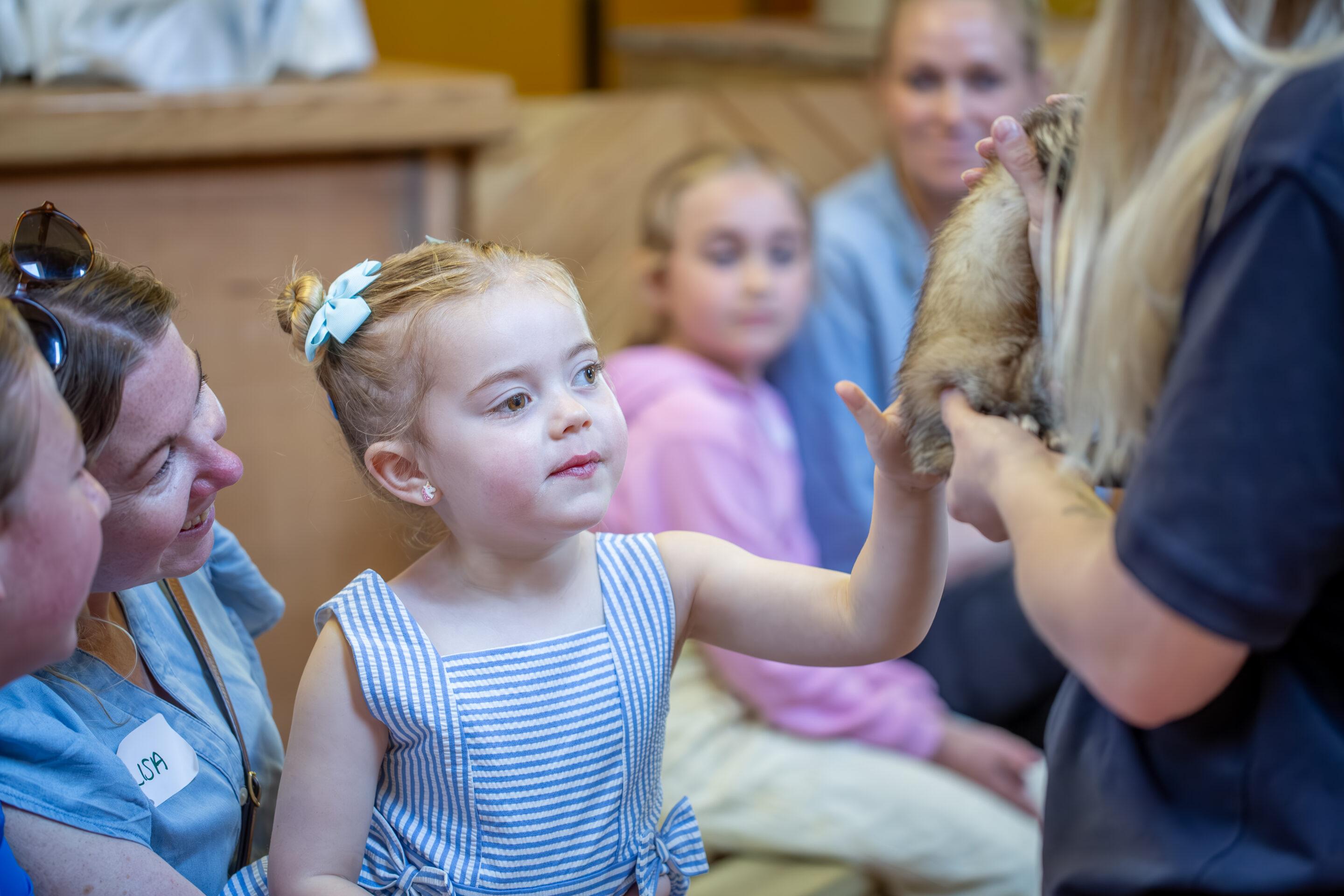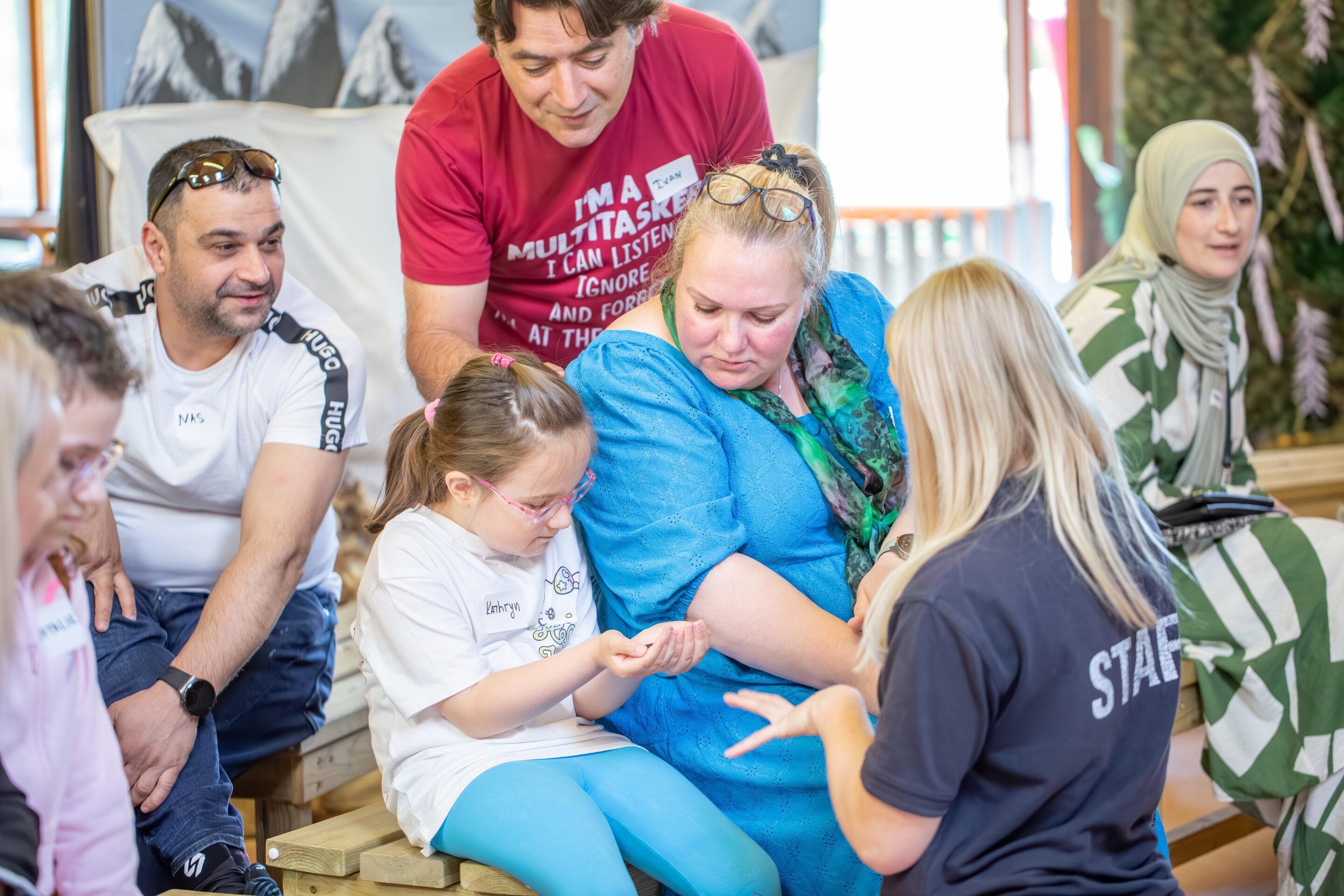 The park was beautiful, with peacocks wandering around and a little train to take everyone through the spacious grounds. We all met in the education centre to have a sensory workshop about different kinds of forest. We even got to meet two very different animals – a hissing cockroach and a ferret (some of the parents backed off at this point)!
