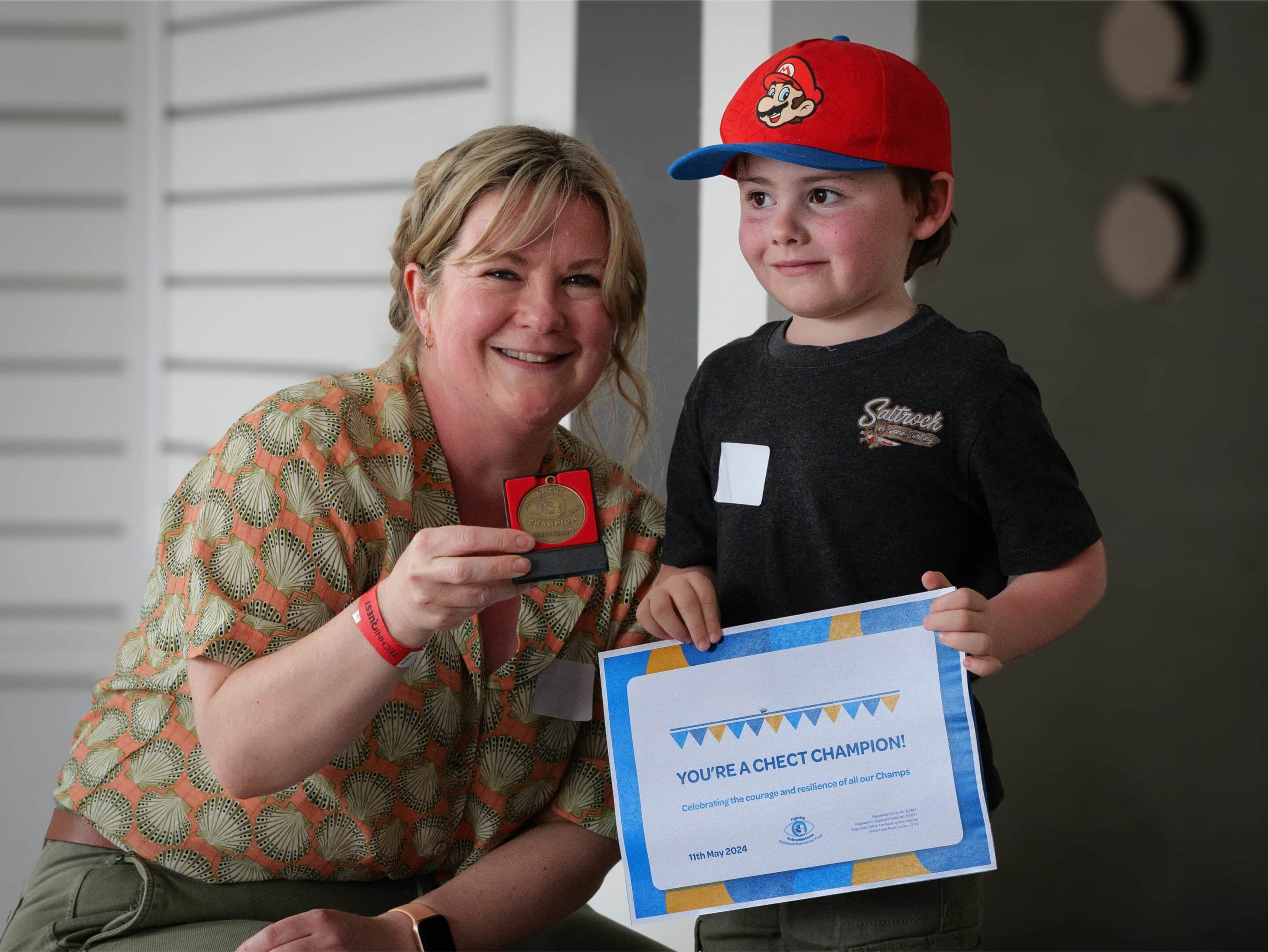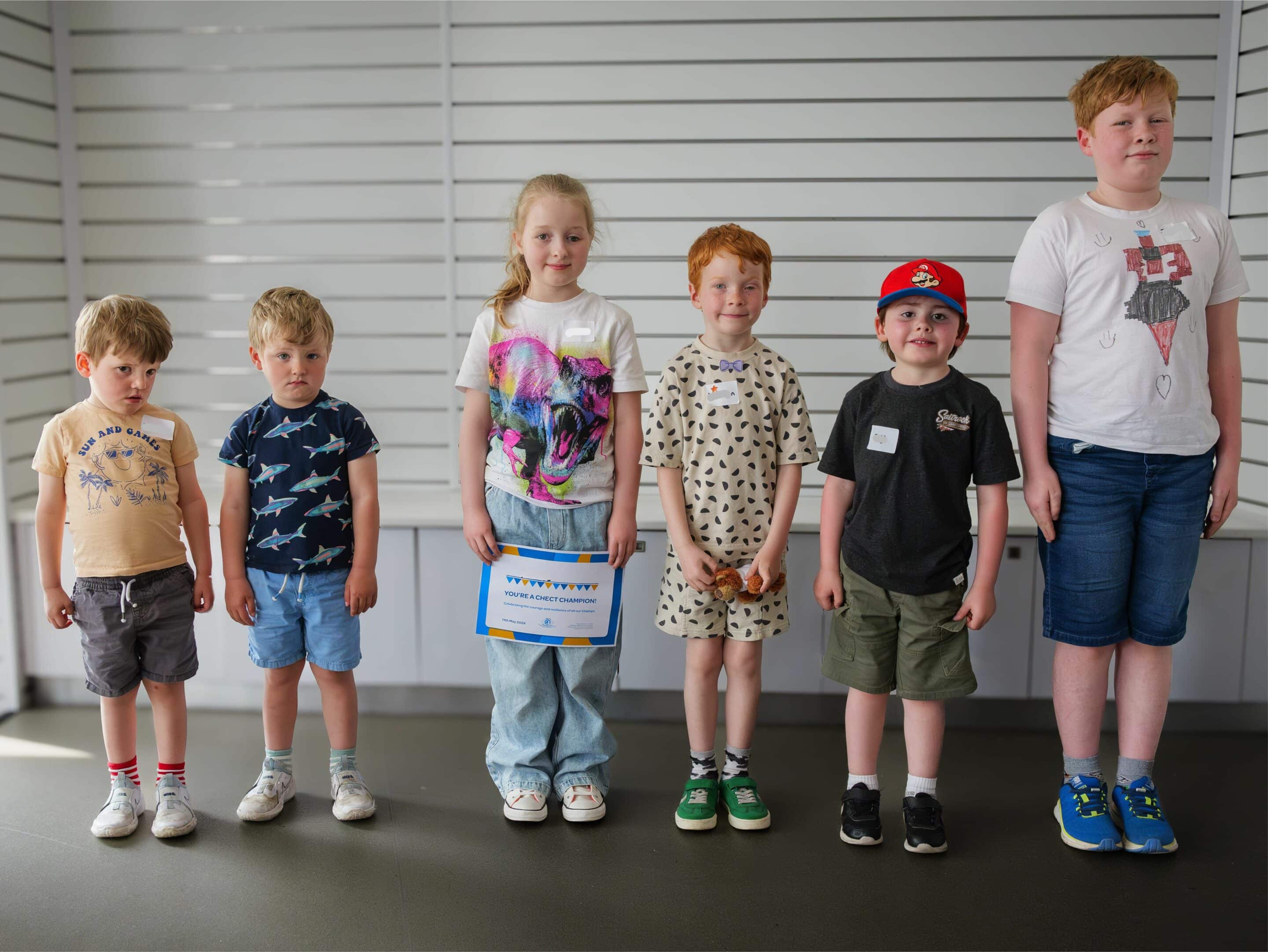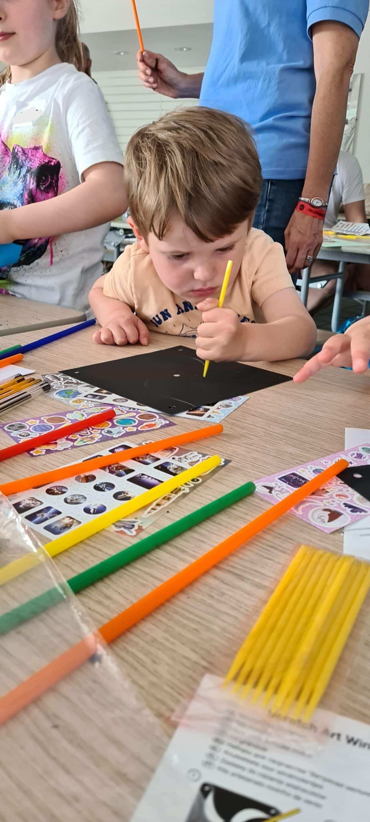 We held our latest CHECT Family Day at Techniquest science centre in Cardiff. Sarah, Beth and Petra from the CHECT team were greeted by glorious Welsh sunshine as we came out of the train station. We just about had time to start setting up for the day, when excited families began arriving. It was a lovely occasion to meet old friends and new over our packed lunches, before Sarah challenged everyone to a game of human bingo. We had to find out lots of info about everyone else there – the hardest thing was finding someone who didn’t like chocolate! The first to complete the challenge was Ella, in superfast time! It was time then to celebrate our CHECT Champions – children and their siblings who had wowed their parents with their bravery and resilience through their Rb treatment. Everyone then had some time to explore the wonderful exhibits at Techniquest (some of the parents remembered visiting when they were at school!), before getting back together for some serious science-related crafting. Windmills were created, rockets launched, and some amazing art created, whilst parents chatted with each other. The final treat was the live Science Show!