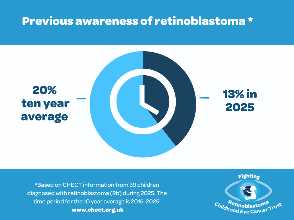 Each year, the Childhood Eye Cancer Trust reports back on families’ experiences of being diagnosed with retinoblastoma (Rb) in the UK: the symptoms they noticed; the healthcare professionals they saw; and how long it took them to reach one of the specialist Rb centres (Birmingham Women’s & Children’s Hospital, BCH, or the Royal London Hospital. RLH).