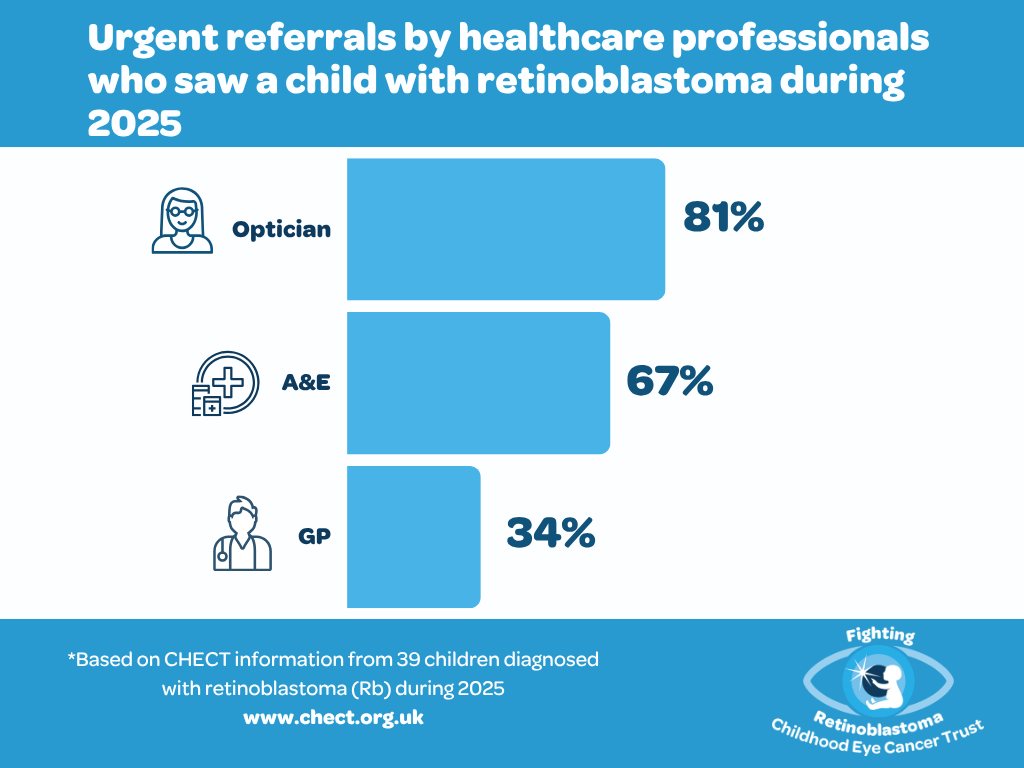 Overall fewer healthcare professionals made urgent referrals when seeing a child with retinoblastoma compared to the 10-year average. The only profession to perform better this year were opticians, with a significant improvement on the 10-year average for urgent referrals made.